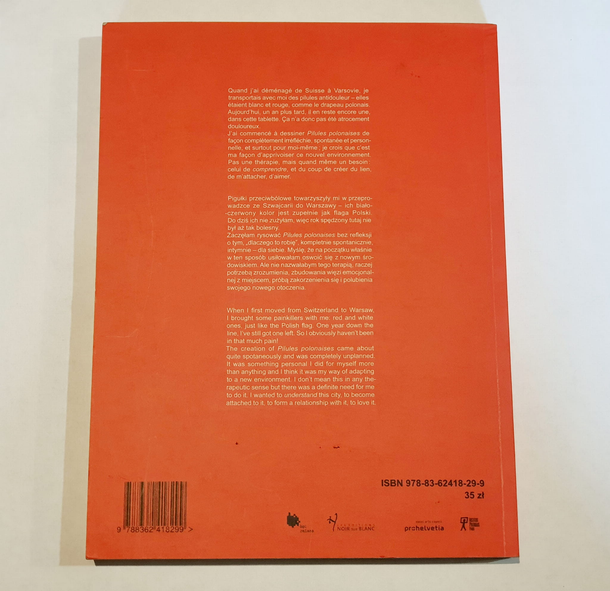 Pigułki przeciwbólowe towarzyszyły mi w przeprowadzce ze Szwajcarii do Warszawy – ich biało‑czerwony kolor jest zupełnie jak flaga Polski. Do dziś ich nie zużyłam, więc rok spędzony tutaj nie był aż tak bolesny.