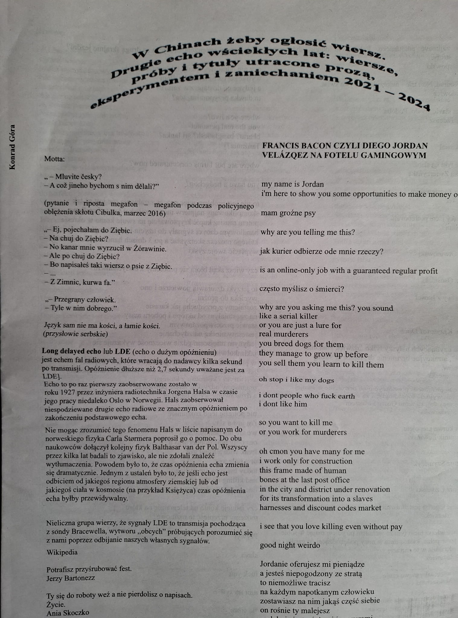 W Chinach żeby ogłosić wiersz. Drugie echo wściekłych lat: wiersze, próby i tytuły utracone prozą, eksperymentem i zaniechaniem 2021-2024 - Konrad Góra